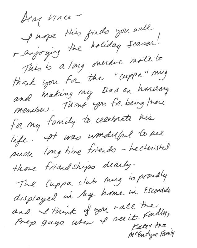 great sense of humor, and a good word for everyone. We will miss him, as we miss all our